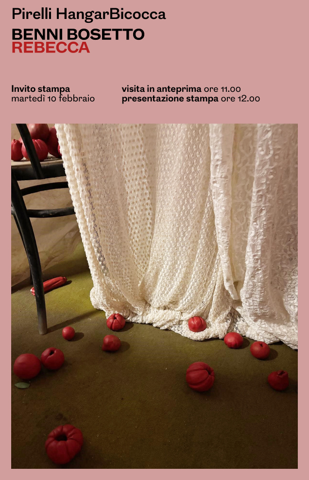 Dal 12 febbraio al 19 luglio 2026, Pirelli HangarBicocca presenta "Rebecca", la prima mostra personale di Benni Bosetto in uno spazio museale. Concepite come un ambiente da abitare, le opere trasformano il museo in uno spazio domestico e immaginativo, dove leggerezza, riposo e piacere assumono una valenza critica. La mostra si configura come un "manifesto sensibile" che riflette su alcune delle tensioni più urgenti del presente — tra libertà e controllo, autodeterminazione e costrizione, produttività e desiderio — affermando il sognare a occhi aperti come forma di resistenza.