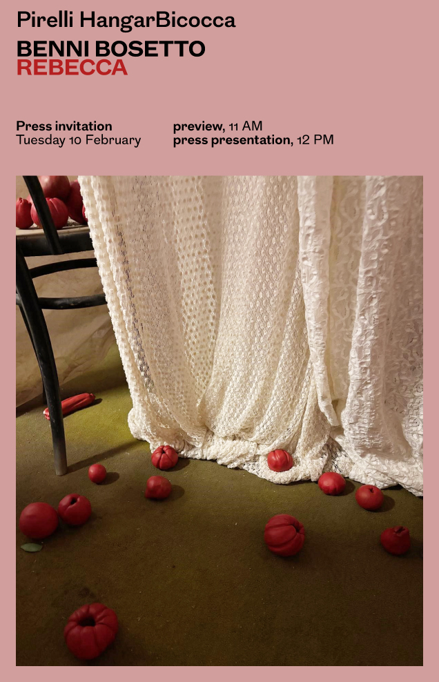 From February 12 to July 19, 2026, Pirelli HangarBicocca will present Rebecca, the first solo exhibition by Benni Bosetto in a museum. Conceived as an environment to be inhabited, the works transform the museum into a domestic and imaginative space, where lightness, rest, and pleasure take on a critical dimension. The exhibition unfolds as a "sensorial manifesto" reflecting on some of the most urgent tensions of the present—between freedom and control, self-determination and constraint, productivity and desire—affirming daydreaming as a form of resistance.
